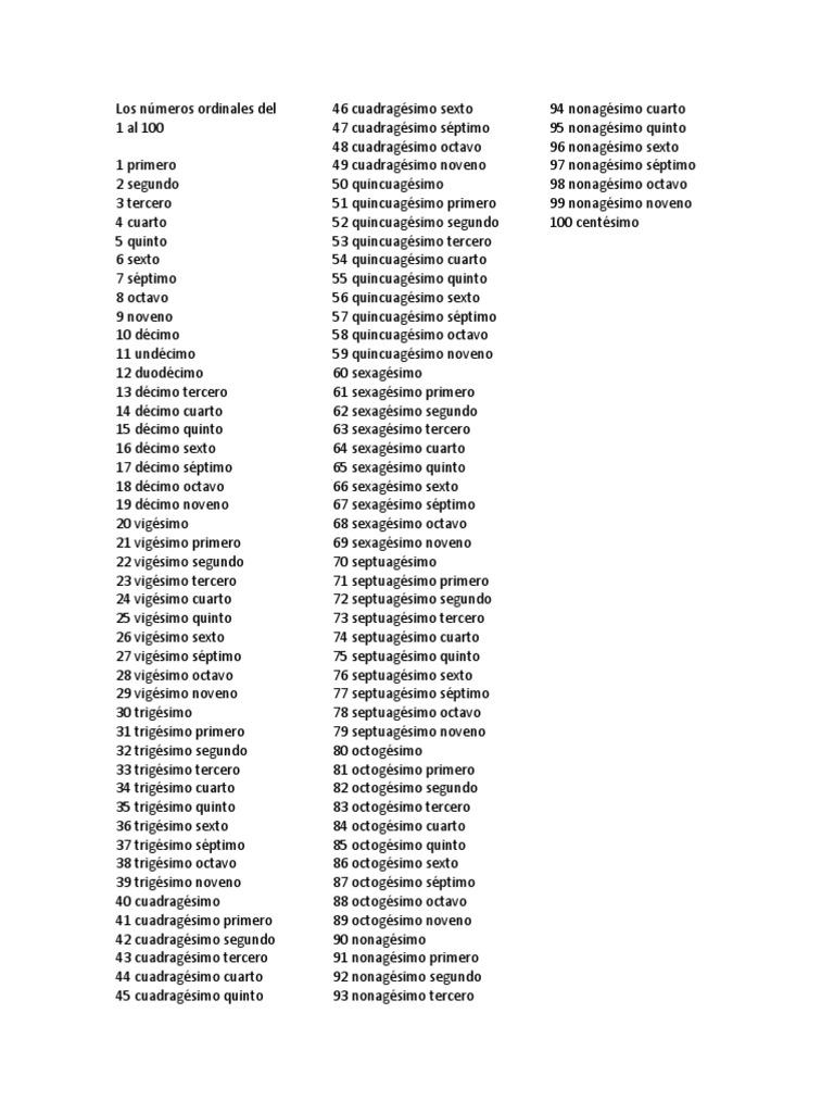 Uncategorized N meros Ordinales Del 1 Al 100 En Espa ol En espa ol tenemos dos formas de n meros Muchos hablantes del espa ol confunden los n meros que tienen una pronunciaci n parecida